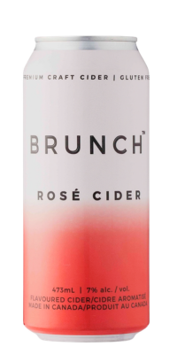 | Brand: Brunch Cider/Organic Beverage Solutions Type: Flavoured – Rosé Location of Production: Thorold, ON ABV: 7% Website Link: obscanada.com Ingredients: Cider, sugar, potassium sorbate, ascorbic acid, natural flavours, sulphites Gluten Free: Yes Sugar Content: N/A Size(s) available: 473ml (can) Availability: LCBO (2026) Flavour:Rosé Colour: Translucent rustic peach Carbonation: Small streaming bubbles |
