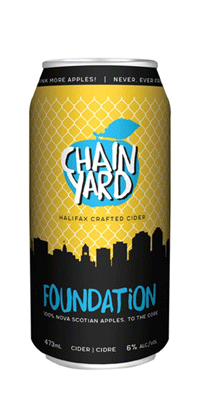 | Brand: Chain Yard Cider Inc. Type: Apple – Dry Location of Brewing: Halifax, NS ABV: 6% Website Link: chainyardcider.com Ingredients: 100% Nova Scotian apples, sulphates Gluten Free: Yes Sugar Content: N/A Size(s) available: 473ml Can |