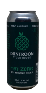 Additional Notes:  The Net Zerø Dry Organic Cider by Duntroon Cyder House not only is an interesting tasting cider, it also has a unique backstory. A rather apple-forward cider, it features a lot of pulpy apple notes that are juicy and caramelized, with some peel notes near the finish. Aftertaste is below average in length however with some tonic and bitter aspects adding depth overall. It has some buttery notes like found in a chardonnay wine. The mission of the cyder is in celebration of their goal to become a fully sustainable, carbon-neutral cyder house. Also features zero sulphites, additives, gluten, sugar and GMO.