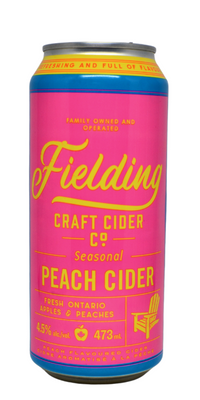 Additional Notes:  Fielding’s Peach Cider is very different from other craft peach ciders in Ontario. There is little to no sweetness from the peach or in the cider. Featuring some fermentation and funky/dank notes, you also get some mild notes from the bourbon barreling, but no spirit astringency. It’s not overly peach or apple focused either way, with the peach showing unripe and pit characteristics. Maybe not what you’d expect in your first sip, as it’s a non-traditional peach-infused cider.