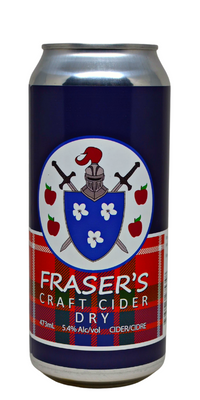 | Brand: Fraser’s Craft Cider Type: Apple – Dry Location of Brewing: Milton, ON ABV: 5.4% Website Link: frasersbeveragecompany.com Ingredients: Ontario Apples, Sulphites Gluten Free: Yes Sugar Content: N/A Size(s) available: 473 (can) Availability: Via Wheelbarrow Orchards online and retail store Flavour: Apple Colour: Pale golden Yellow Carbonation: Almost still |