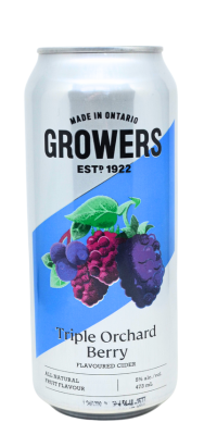 Additional Notes: The Triple Orchard Berry by Growers Cider is an extra sweet blend of amplified “artificial-tasting” (says natural flavours though) candied berries. More of a cooler, it has subtle apple undertones with a blueberry primary, raspberry and blackberry elements in that order. Some film in the aftertaste.