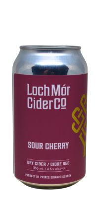 | Brand: Loch Mór Cider Co Type: Flavoured – Cherry Location of Brewing: Hillier, ON ABV: 4.6% Website Link: lochmorcider.com Ingredients: N/A Gluten Free: Yes Sugar Content: N/A Size(s) available: 335ml (can) Availability: LCBO (2024), Loch Mór online and retail stores Flavour: Cherry Colour: Translucent dark vibrant red Carbonation: Medium, streaming bubbles, some foam. |