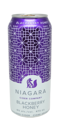 | Brand: Niagara Cider Company Type: Flavoured – Blackberry Location of Production: Beamsville, ON ABV: 6% Website Link: niagaracidercompany.com Ingredients: Apples, sugars (blackberry juice concentrate, honey, invert sugar), natural flavours, sulphites Gluten Free: Yes Sugar Content: N/A Size(s) available: 473ml (can) Availability: LCBO 2024, Niagara Cider @ Bench Brewing retail and online stores Flavour: Blackberry & honey Colour: Transparent ruby red, rusty hues Carbonation: Small, streaming bubbles |