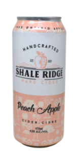 | Brand: Shale Ridge Estate Winery Type: Flavoured – Peach Location of Brewing: Thedford, ON ABV: 4.2% Website Link: shaleridgeestatewinery.com Ingredients: N/A Gluten Free: Yes Sugar Content: N/A Size(s) available: 473ml (can) Availability: Shale Ridge retail and online store Flavour: Peach Colour: Transparent sunshine yellow Carbonation: Large, infrequently streaming bubbles |