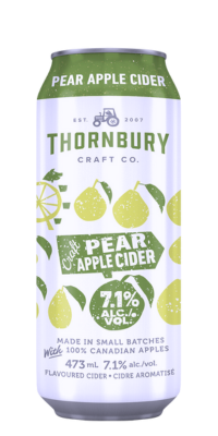Additional Notes: Thornbury’s Pear Apple is a sweet pear-flavoured apple cider experience that clocks in at a strong 7.1%. A sweeter offering – maybe even cloying to some – you get both the natural fruit sugars and cane sugar notes within. The pear is a soft, juicy flavour, that has a slightly heavier (more syrupy) mouthfeel than your typical pear or apple cider. Pear ends a bit candied too and those notes stay a bit. The apple base is pulpy and weaves in and out of the pear notes. Fruits become slightly drier in the finish. For a thinner bodied experience / smoother over all, drink over ice. Maximum crispness in this cider.