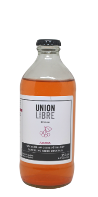 | Brand: Union Libre Cidre & Vin Inc Type: Flavoured – Aronia Berries Location of Brewing: Dunham, Quebec ABV: 6.5% Website Link: unionlibre.com Ingredients: Cider, aronia berries, sugar, yeast Gluten Free: Yes Sugar Content: N/A Size(s) available: 355ml (bottle) Availability: Quebec Flavour: Aronia berries Colour: Cloudy ruby grapefruit Carbonation: Frequent, small streaming bubbles |