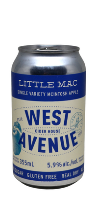 | Brand: West Avenue Cider Type: Apple – Single Varietal Location of Brewing: Flamborough, ON ABV: 5.9% Website Link: westavenue.ca Ingredients: Macintosh apples, sulphites Gluten Free: Yes Sugar Content: N/A Size(s) available: 355ml (can) Availability: West Avenue Retail and Online Store Flavour: Apple Colour: Cloudy, straw yellow. Lots of trub Carbonation: Medium, Streaming bubbles |